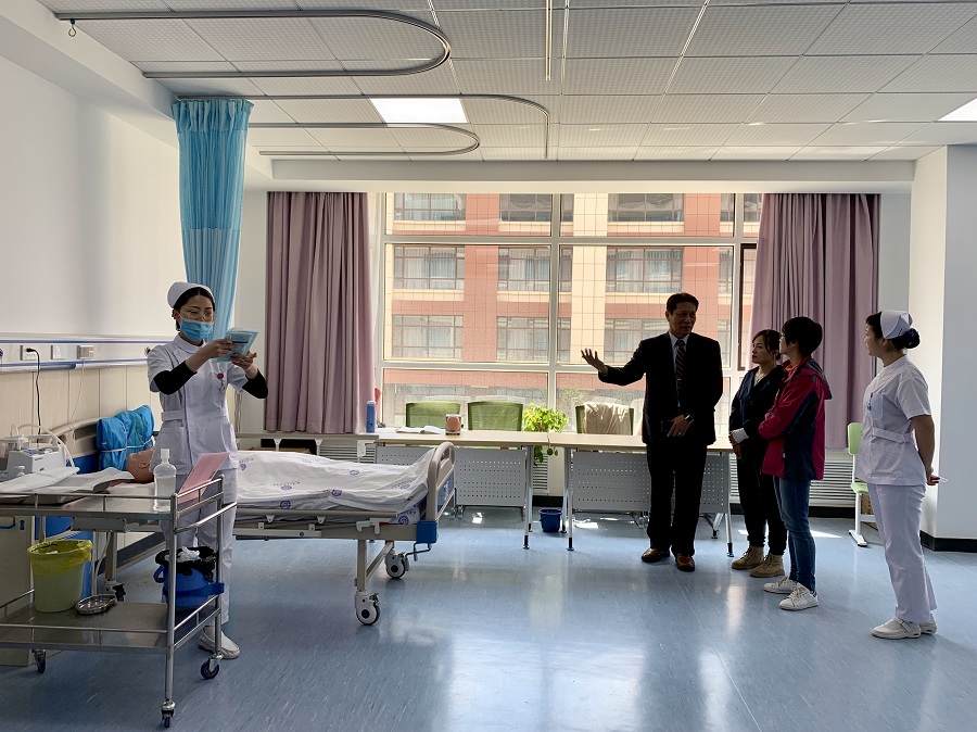 会后,副处长叶金麟一行、副校长蔡世杰一行在王凤丽副校长的陪同下,参观了临床护理学院与中医药学院。