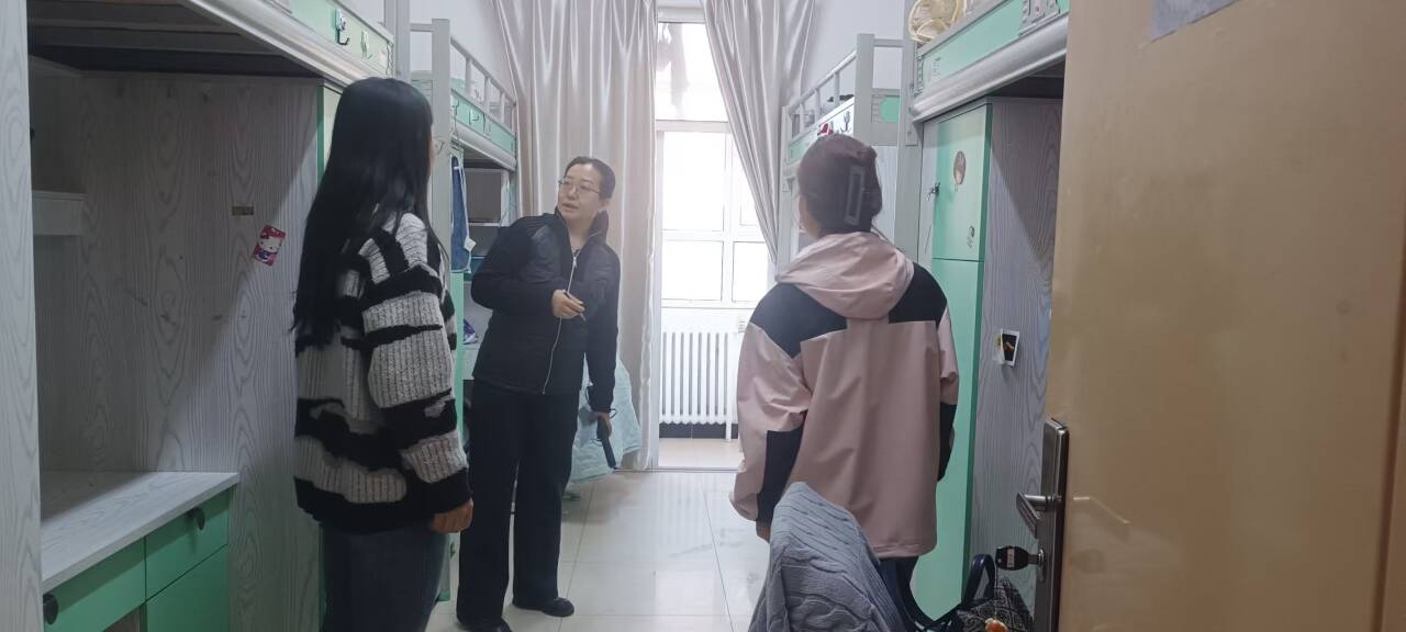 宿舍安全检查阶段,院领导带领全体在校班辅导员对全院宿舍展开全覆盖检查,重点排查大功率电器、管制刀具等违规用品。检查发现,个别宿舍存在电吹风、卷发棒、酒精灯等不安全物品,还有宿舍卫生状况欠佳。针对这些问题,检查组立即现场整改,并将情况反馈给辅导员,要求后续跟进监督,确保宿舍安全与整洁。