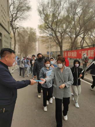 保卫处工作人员向下课后的师生分发宣传单与学习手册