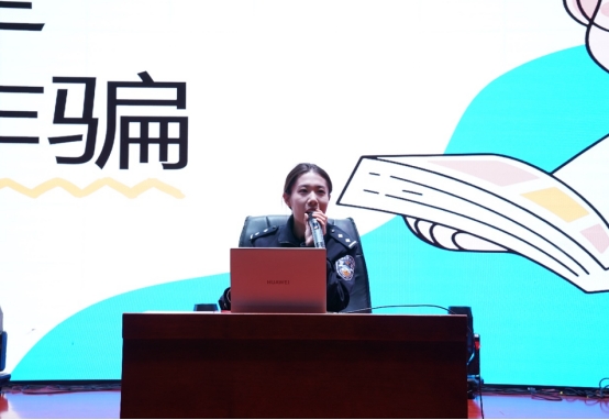 讲座中,张老师围绕当前诈骗形势、常见诈骗类型及手法、受骗心理剖析等主题进行深入讲解,通过视频、图文等形式展现真实诈骗案例,分析案例中的受骗原因,以提升学生的鉴别意识和防范能力。