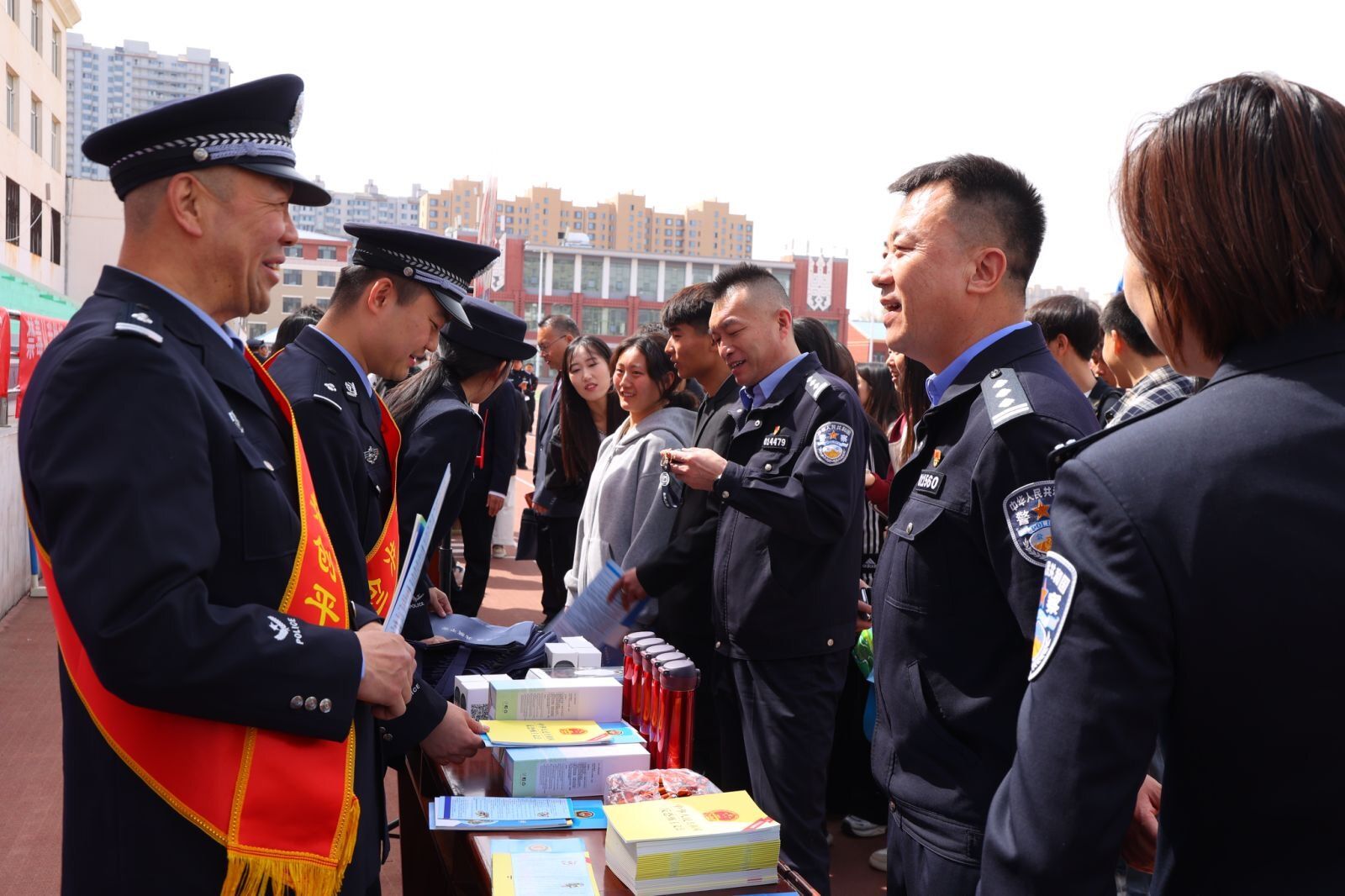 师生有序参观学习了展板区域国家安全相关知识内容。公安人员向师生群体宣传国家安全相关知识。