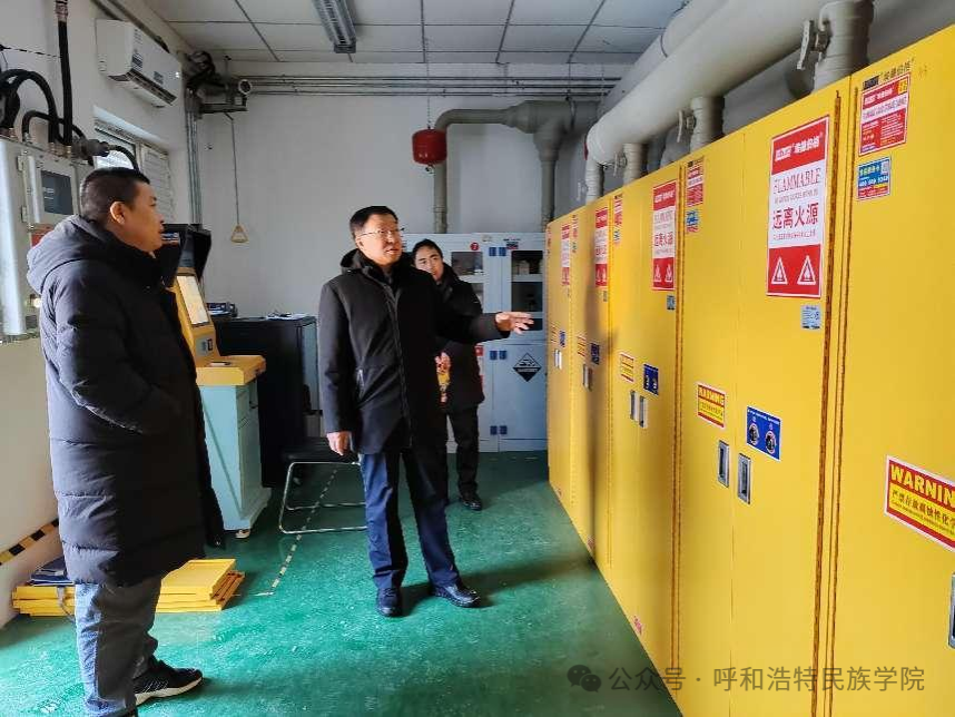 会后,格根哈斯、刘瑞鸿到危化品暂存室及宿舍楼等重点区域进行细致检查,针对检查中发现的问题,逐一明确整改措施和责任人,并要求限期整改完成。宣传部、保卫处、后勤管理处、学生工作部、化学与环境学院相关负责同志陪同。