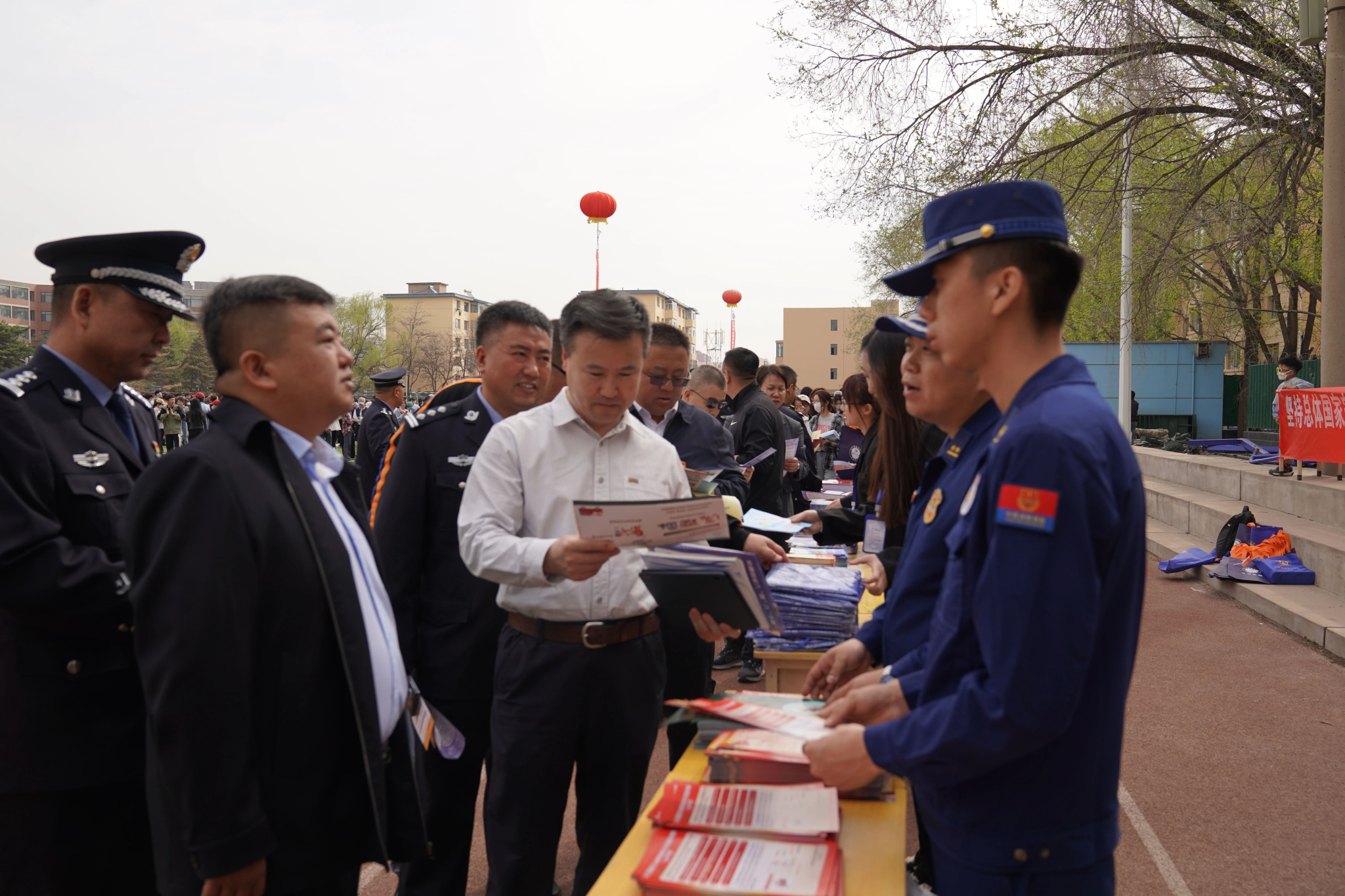 校党委委员、副校长额尔敦布和、内蒙古国安厅闫支队长、校党委学生工作部部长常喜、校保卫处处长关荣、新城区公安局政保大队教导员庞建平、校警务室警长兼保卫处副处长杨生文、海东路派出所所长赵志飞、新城区公安局禁毒大队大队长陈根生、新城区交管大队市场中队指导员杨得志、回民区公安局交管大队四中队队长郭纳应、新城消防救援中队队长于子均、呼市禁毒协会会长王凯鹏出席活动。
