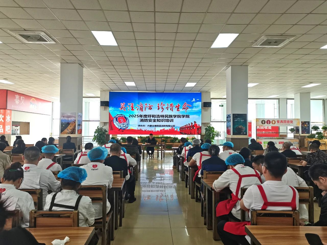 为进一步强化消防安全责任意识,切实提升消防突发事件应急处置、自救互救能力,确保新学期后勤服务保障各项工作安全有序开展,3月25日,安全管理处与后勤管理处联合开展了消防安全知识培训暨灭火应急演练。后勤及食堂从业人员、物业公司服务人员参加培训。