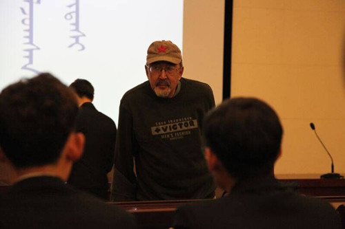 传媒系邀请蒙古国著名导演嘉米杨先生作艺术讲座 近日,传媒系邀请蒙古国著名导演嘉米杨先生在图书馆一楼报告厅作传媒艺术知识讲座。本次活动吸引了一百余名师生前来聆听。讲座中,嘉米杨先生讲解了电影艺术基础及播音与主持艺术基础等大学生感兴趣的知识,现场为大家答疑解惑,并与师生进行了互动和交流。 嘉米杨,蒙古国著名导演,1972年毕业于莫斯科国立电影大学。1992年至2004年期间曾在欧洲各国电视台参与多个纪录片制作。 著名导演嘉米杨先生 部分师生合影