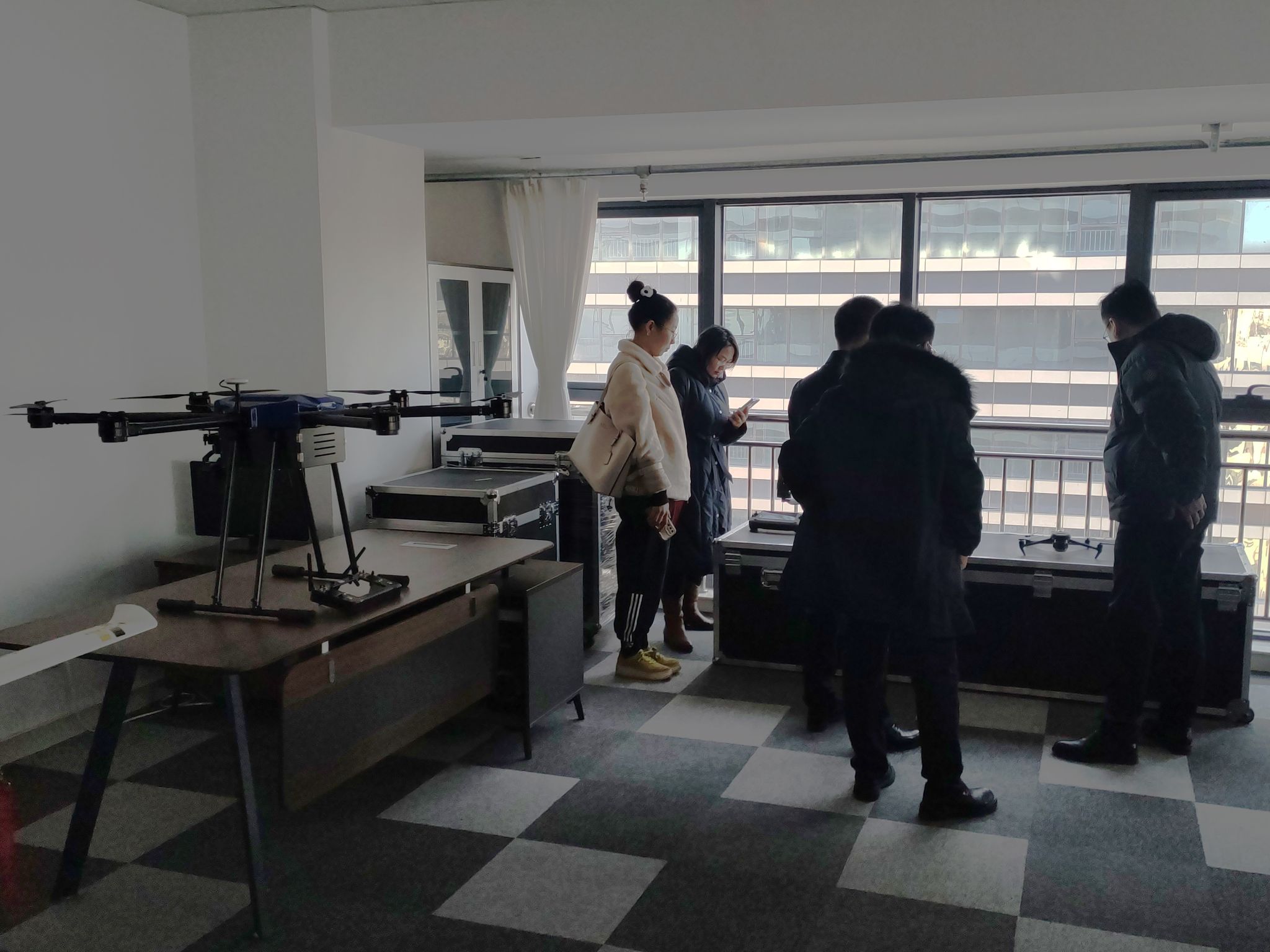 邦飞科技是集智能无人飞行、执飞驾考培训等相关业务于一身的科技公司。学院一行首先参观了公司主营业务的设备展示,了解航拍领域的动态前沿,随后院企双方就各自意向开展座谈交流。