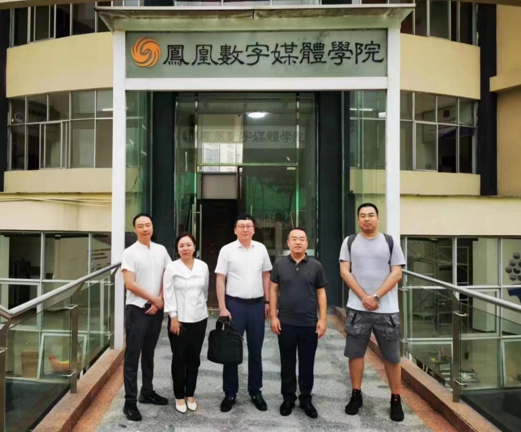 为扎实推动主题教育走深走实,推进专业转型发展,5月21日,新闻传媒学院党总支书记额尔敦毕力格、副院长安迎春、党政办主任阿特尔到贺州学院凤凰数字媒体学院开展调研,旨在了解该校文化与传媒学院和凤凰数字媒体产业教育集团合作办学经验,借鉴产教融合的成功举措。贺州学院文化与传媒学院党总支书记何婷、凤凰数字媒体学院执行院长祝林及相关科室负责人出席接待并开展交流座谈,凤凰传媒产教集团副总裁刘建飞陪同考察。