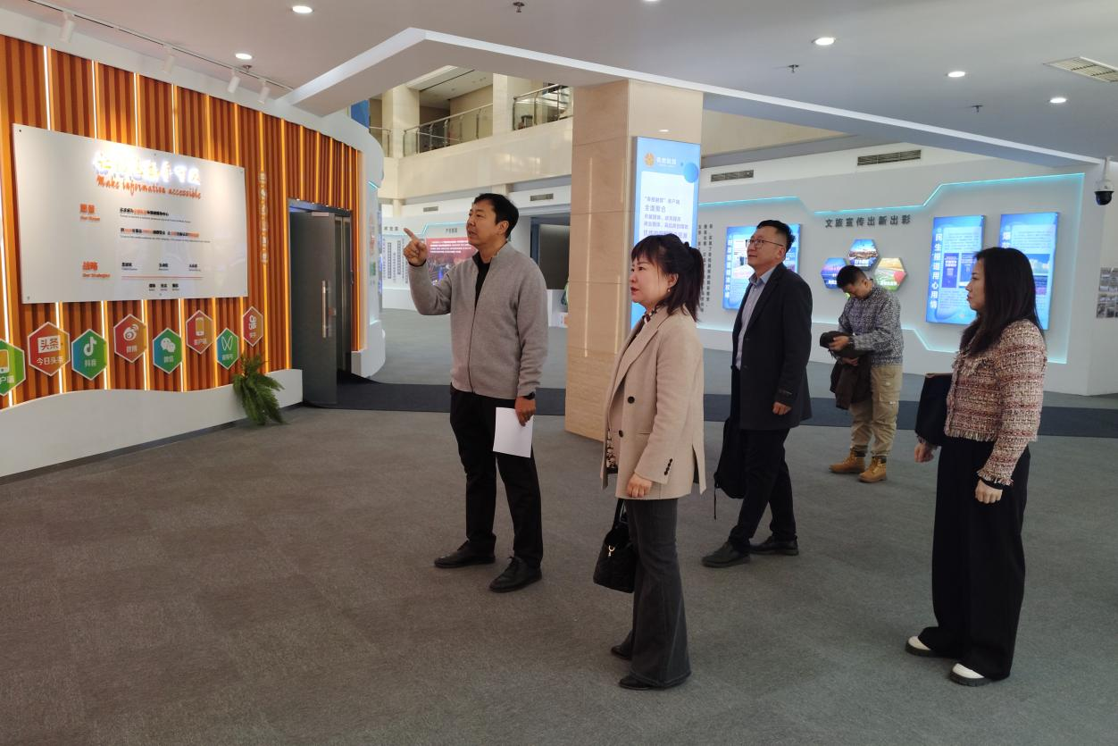 学院一行首先参观了解了“青橙融媒”品牌矩阵发展的简要历程与运行现状,随后与中心副总编辑前达门、副主任舒雨、国际传播事业部负责人阿古达木和校媒合作负责人邱宇展开座谈交流。前达门对学院到访表示欢迎,着重介绍了校媒合作模式与成功经验举措。学院领导班子成员分别从各自工作领域出发,谈及毕业生实习安排,寻求专业转型发展思路,探索校媒如何广泛与深入合作的路径。双方一致认为,在当前媒介深度融合的环境下,面对新媒体和互联网的独特属性,要大胆抛开“老路子”,关注和挖掘大学生群体的兴趣与潜力,围绕青年人的活力促生创作与生产,继而更进一步实现“校媒企”三方的共创与合作,达到育人、用人、利人协同发展。