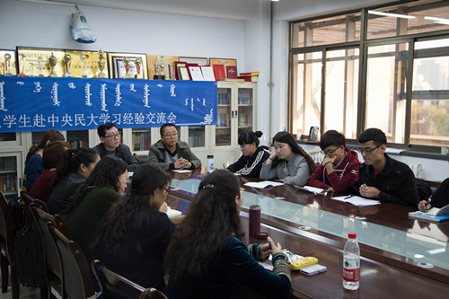 2014年10月28日下午,传媒系“新闻学专业学生赴中央民大学习经验交流会”在系资料室成功举办,系书记常喜、系副主任额尔敦毕力格、团总支和新闻学教研室全体老师与学生代表共同参会。
