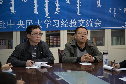 会上,赴中央民大学习一年归来的2012级新闻学班苏日巴特、王强、洪扬三位同学与大家分享了他们的学习情况和心得体会,老师和同学们就他们关心的话题与三位同学进行了交流,每位师生都有所思考和启发。这三位同学是学院对口支援计划实施以来,传媒系派出的第一批赴中央民大交流学习的优秀学生。他们在中央民大学习期间刻苦勤奋,虚心上进,汲取了养分,开拓了视野,回到学院后把良好的学习态度和思维方式传给了身边的人,影响和带动了一批同学。