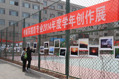 近日,传媒系摄影专业2014年度作品展在篮球场东侧举办。