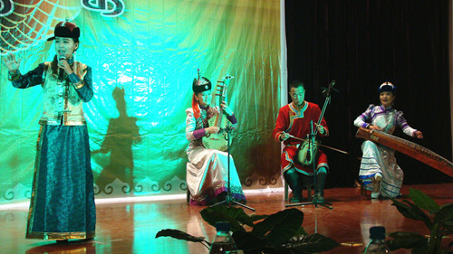 晚会首先由女子电声乐队的一曲激情四射的《吉他之歌》开场就立刻引爆全场气氛。苏日嘎等同学采用不同的组合形式,用饱含深情的诗歌展示了语言和声音的魅力。散萨日等同学表演的蒙古贝尔格舞蹈以其新颖的表演创意、独特的民族风情以及洋溢的青春味道赢得了观众阵阵掌声。红格尔珠拉等近20名同学的民族服装展示流光溢彩,给大家带来了民族与时尚元素融合的视觉冲击。女生萨克斯独奏《暗香》、幽默风趣的老人情景舞蹈、寓意深刻的小品《录取主持人》等节目也都一一成为晚会的亮点。现场掌声和欢呼声不断,演员和观众都沉浸在一片欢乐的海洋之中。