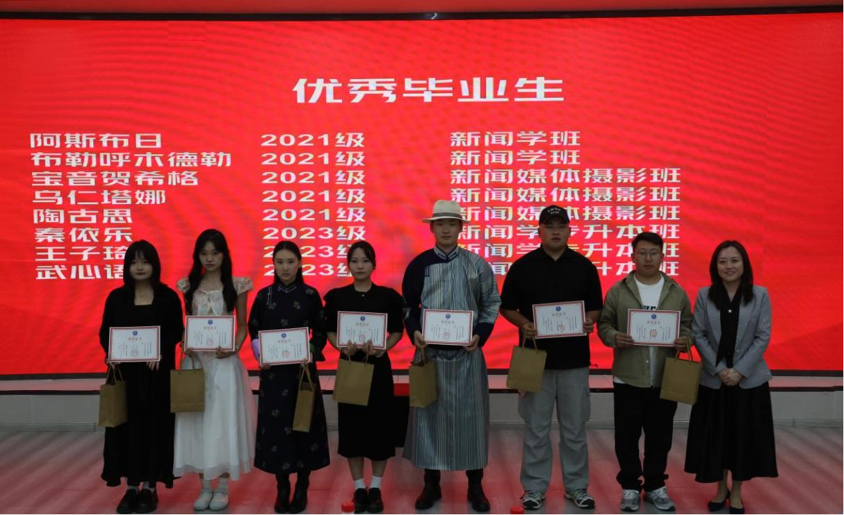 表彰大会上,院长额尔敦毕力格代表学院寄语全体毕业生,勉励他们在新征程上勇毅前行。优秀毕业生代表也登台发言,分享了求学路上的成长感悟。同时,大会还呈现了舞蹈、演唱、朗诵等节目,充分展现了新闻传媒学院学子的多才多艺与青春风采。