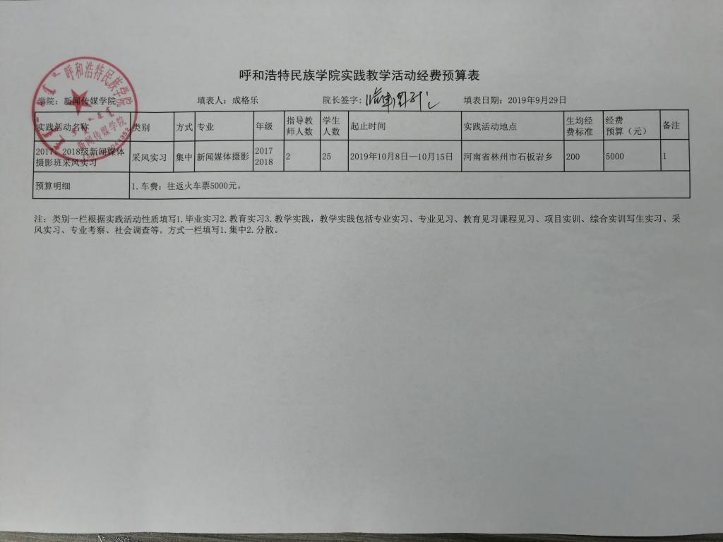 根据《YABO鸭脖实习实践教学经费管理办法》要求,现将公示2019—2020学年度第一学期摄影专业采风活动的计划及经费预算。2017、2018级摄影班共19名学生参加了本次采风。申请经费为3800.00元,用于学生交通费上。公示期限为3天,2019年11月13日至2019年11月15日。如有异议,请在公示期间内向院领导反映。 新闻传媒学院 2019年11月12日