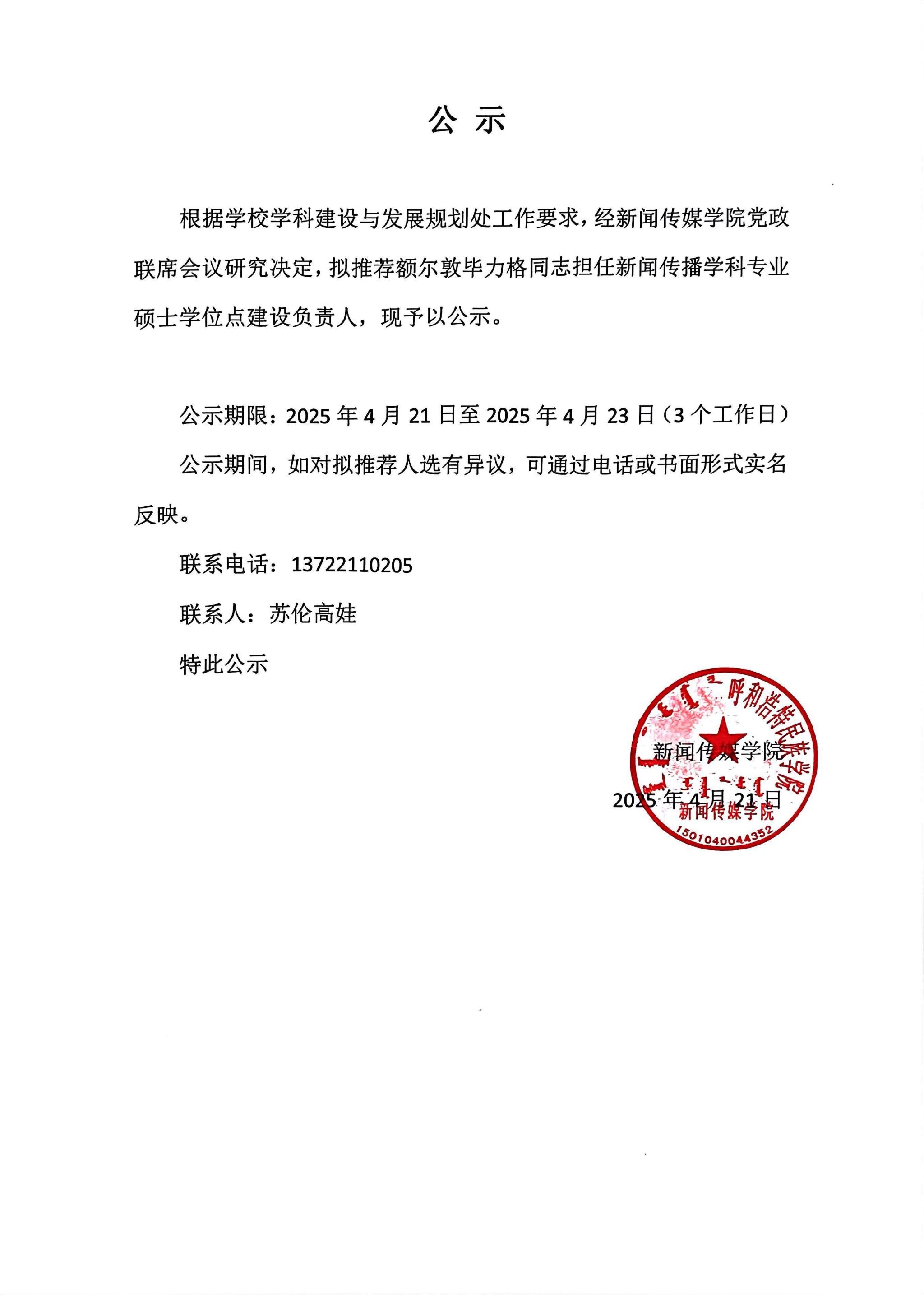 关于推荐新闻传播学科专业硕士学位点建设负责人的公示
