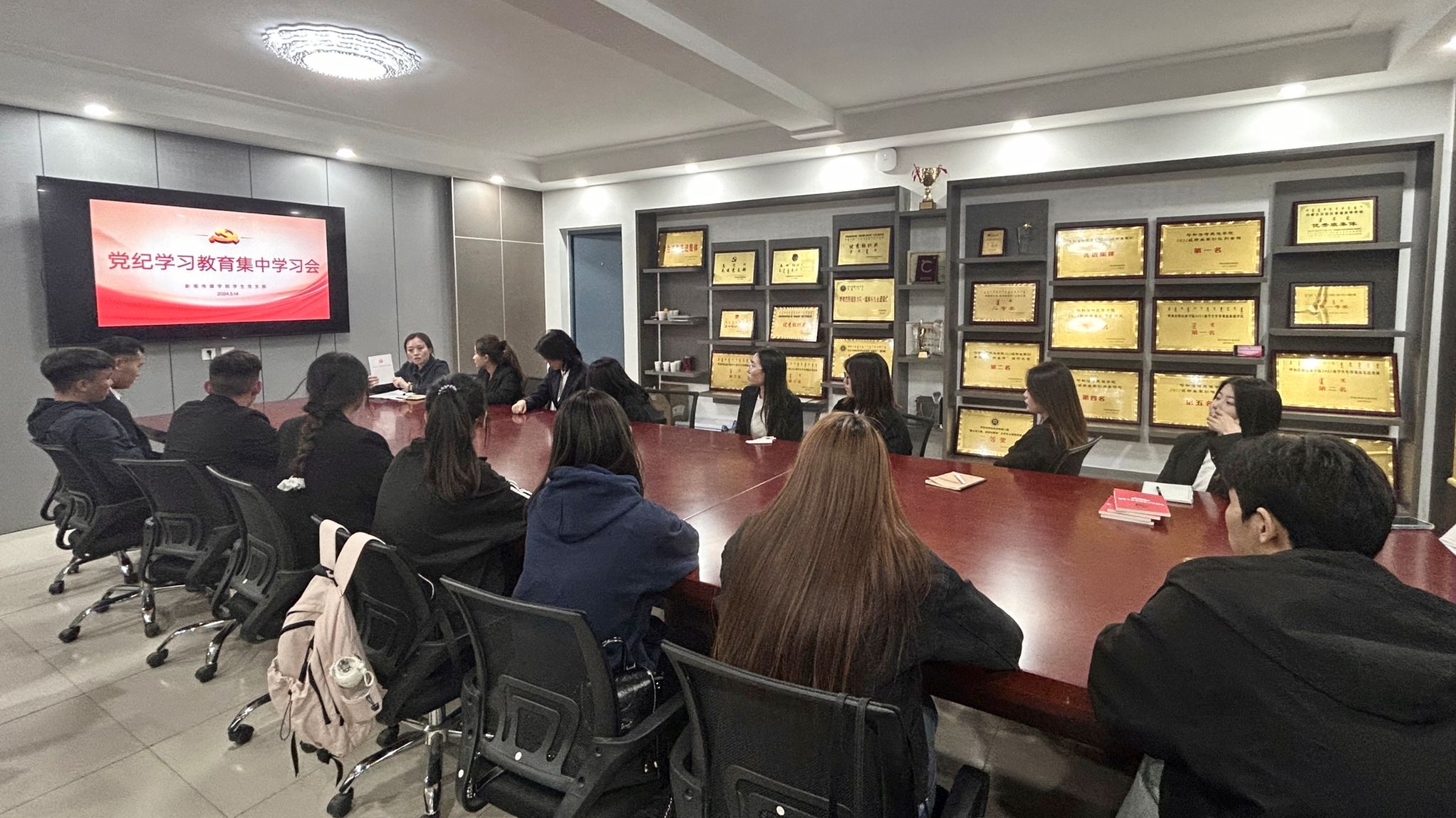 5月15日,新闻传媒学院学生党支部在都林楼519会议室召开党纪学习教育集中学习会,学院党总支副书记王丽主持,全体学生党员参加。 会议落实“第一议题”制度,传达学习习近平总书记在新时代推动西部大开发座谈会上的重要讲话精神。随后,学生党员们深入学习领会新修订的《中国共产党纪律处分条例》,大家纷纷表示,要严守纪律规矩,强化责任担当,践行初心使命,自觉学纪、知纪、明纪、守纪。 学院将有序有力开展党纪学习教育,营造人人学纪的浓厚氛围,不断推动党纪学习教育走深走实。