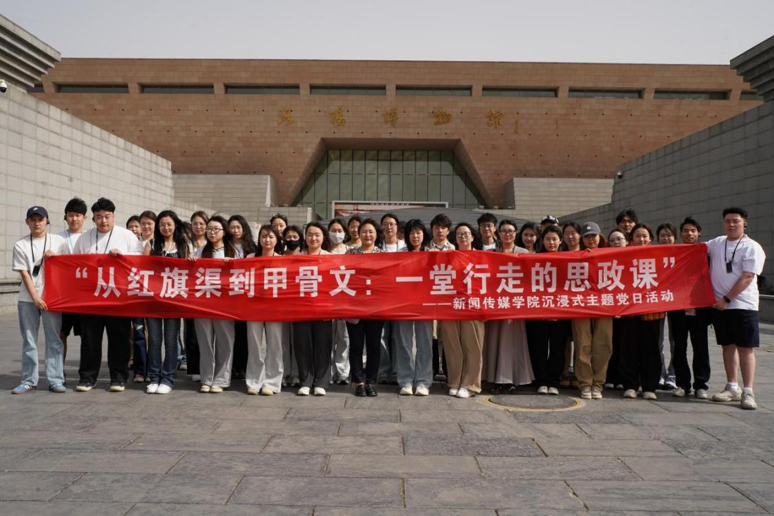 5月9日至11日,新闻传媒学院教工党支部书记萨仁高娃带领党员师生代表赴河南开展“从红旗渠到甲骨文:一堂行走的思政课”沉浸式主题党日活动。团队先后走进洛阳博物馆、中国文字博物馆和红旗渠纪念馆,通过实地探访、现场教学和专题研讨,将红色教育、文化传承与专业实践深度融合。