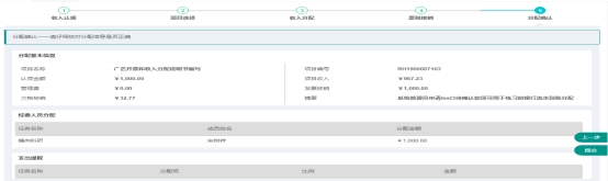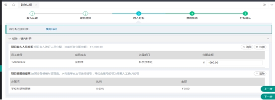 如果认领项目是科研项目就选择科研收入分配;认领项目不是科研项目则选择其他收入分配后弹出如下图所示。