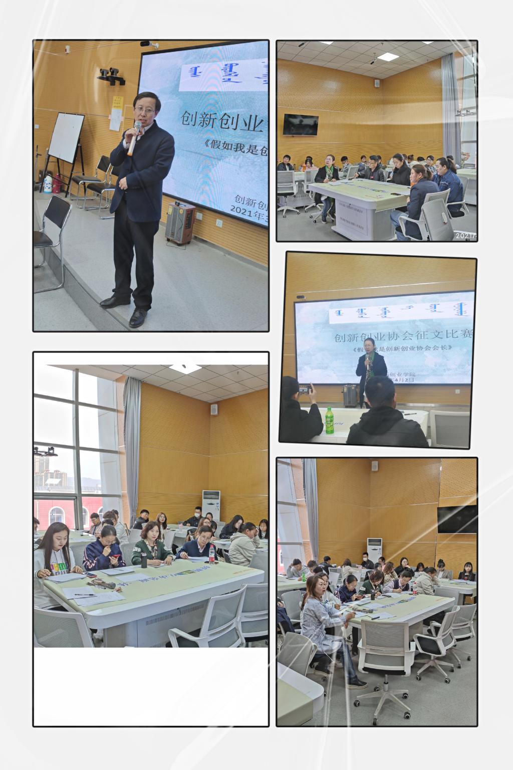 为充分锻炼创新创业协会同学们的创新能力与创新思维,发挥同学们的主观能动性,推动创新创业协会工作,由创新创业学院策划、布置了以《假如我是创新创业协会会长》为题的征文比赛,于2021年3月29日中午和4月2日中午分两场在体育馆五楼正式举行。3月29日首场征文比赛上创新创业学院院长哈斯同力嘎做了开场讲话,为同学们鼓气加油并提出些许殷切期望。两场比赛分别邀请了各5名创新创业骨干教师当评委,有心物教育专任创新创业课程讲师王新域、巴雅尔,创新创业骨干教师陈玉珍、敖日罕、张璟华、白宝华、珠丽等诸位教师,为参赛者进行现场评比打分。经过两场激烈角逐,征文比赛落下帷幕。4月22日,在体育馆五楼举行征文比赛颁奖仪式,评决出一等奖一名、二等奖三名、三等奖五名,并对对获奖学生颁发奖状,以资鼓励。在各位老师与协会成员的共同努力下,此次征文比赛圆满完成。