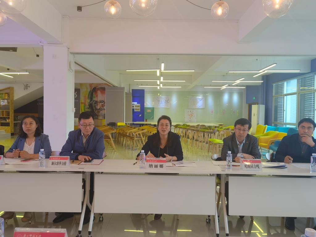 纳丽娜副校长代表学校对广西师范大学的热情接待表示衷心的感谢,并从学校历史沿革、办学情况等方面介绍了鸭脖改革发展的基本情况,重点就学校创新创业教育开展情况、成效及瓶颈进行了详细介绍。随后,双方就如何更好地开展高校创新创业教育工作、如何高效率、高质量的建设课程等共同关心的话题进行深入的探讨和交流。纳校长表示,广西师范大学创新创业的先进经验为鸭脖进一步推动创新创业教育的发展提供了宝贵的借鉴,下一步鸭脖将在顶层设计、政策制定、机制体制的建立等方面继续推动,细化发展思路。纳校长希望,两校能在双创方面加强合作,在对口的专业、课程、师资、科研等方面有更深入的合作交流。
