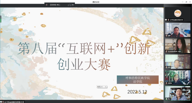 为进一步激发我院大学生创新创业热情,推荐优秀创业项目进入校赛,我院于5月12日采用线上视频的方式进行“第八届互联网+大学生创新创业大赛”选拔答辩活动。评委由赛事指导经验丰富的校内专家组成,包括计算机科学与技术学院冯培禄、民族学学院彭春梅、经济管理学院那仁图亚、音乐学院布仁套格套、法学院乌兰其其格、包玉柱、姜鹏等7位老师担任。