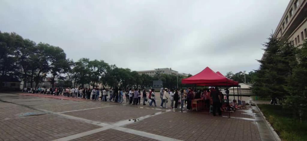 这天天气微凉,还下了一丝细雨,但是依旧不能阻止活动举行的进度,同学们陆陆续续来到活动地点,现场排起了长长的队伍,创新创业协会成员有序安排组织,同学们积极配合排队,一一交上自己捐献的物资如:衣服,书本,彩笔,体育用品等等并进行登记,还特意写上祝福信或贺卡,给那些渴望读书的孩子们献出了属于自己的爱心。