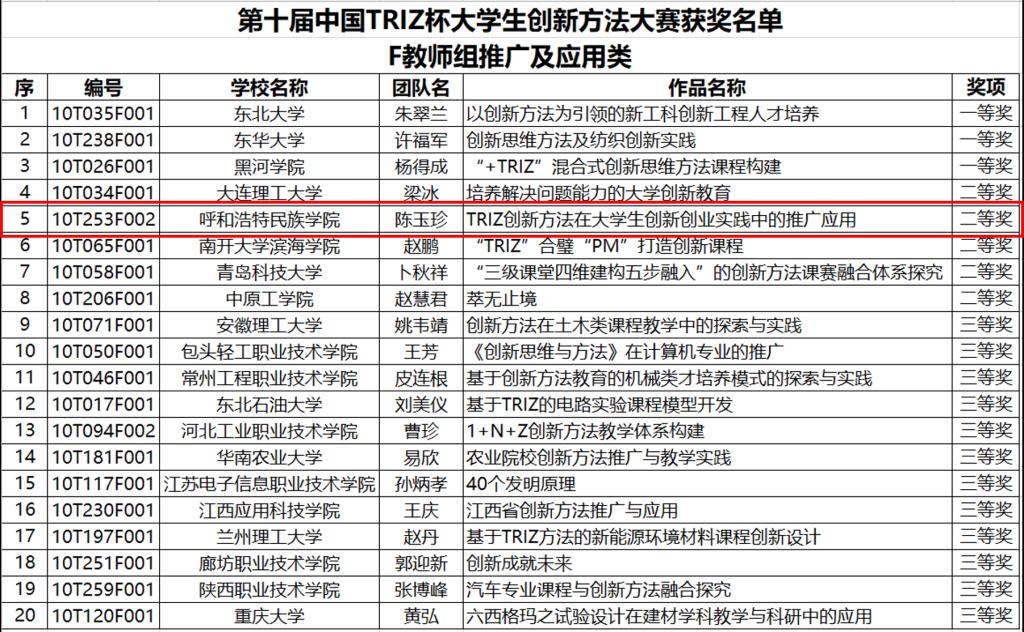 本届大赛共有全国29个省、市、自治区的296所高校2145项作品参赛,经过校赛、省赛选拔,共有1556项作品被推荐到国赛初赛,经专家盲评初审, 220项创新项目突出重围,进入全国总决赛。由于疫情,决赛以线上答辩的方式一较高下。最终,鸭脖化学与环境学院陈玉珍博士《TRIZ创新方法在大学生创新创业实践中的推广应用》项目获得教师组推广及应用类二等奖。同时,鸭脖荣获“优秀组织奖”荣誉称号。