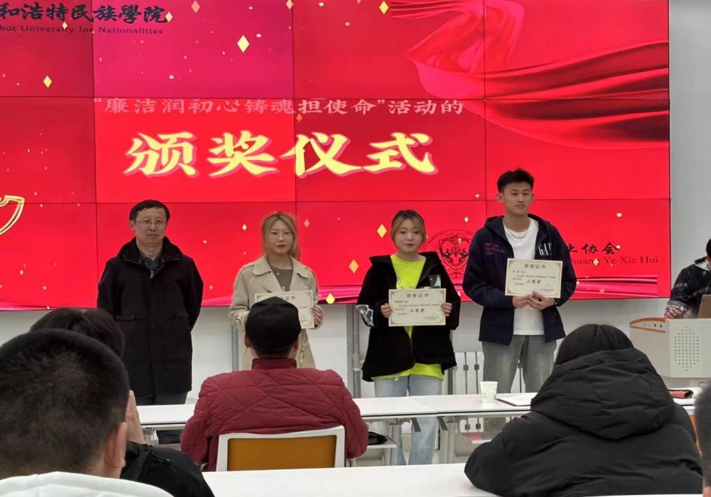 创新创业学院于3月24日晚七点,在创业楼一楼创业实训室举行“廉洁润初心 铸魂担使命”作品征集活动颁奖仪式,教辅党总支书记那日苏、创新创业学院院长哈斯同力嘎、创新创业学院实训部主任多荣娜以及40余名参赛学生参加了本次活动。
