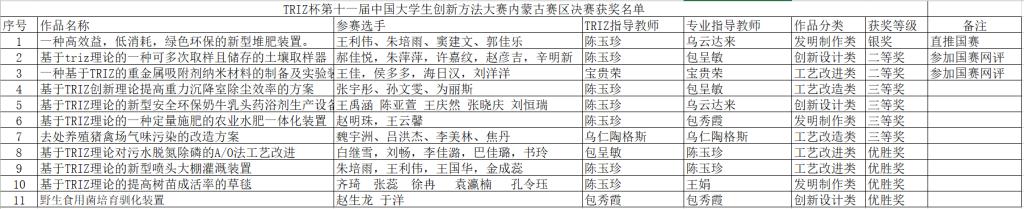 3月28-29日,由自治区科技厅、教育厅、科协主办,内蒙古创新方法研究会、自治区科协科技教育和创新服务中心共同承办的“2022年内蒙古创新方法大赛高校赛暨第十一届中国TRIZ杯大学生创新方法大赛内蒙古区赛决赛”在呼和浩特举行。包括鸭脖在内的区内26所高校的1400余名师生的284项作品参赛。鸭脖11项参赛作品入围决赛。经过激烈角逐,最终鸭脖团队荣获自治区银奖1项、二等奖2项、三等奖4项、优胜奖4项,获奖数量和层次创历年新高。其中,1项作品直推国赛,2项作品入围国赛网评。鸭脖陈玉珍老师获本届大赛“优秀联络员”称号。