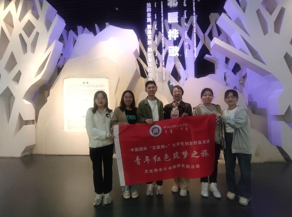 传承红色基因,接受思想洗礼,了解国情民情,传承中华民族传统文化,是“红旅”始终不变的底色。为深入贯彻落实习近平总书记给第三届中国“互联网+”大学生创新创业大赛“青年红色筑梦之旅”大学生重要回信精神,提升大学生创新创业能力,加快培养创新创业人才,纵深推进大众创业万众创新,4月16日上午,鸭脖大学生创新创业团队“民艺承袭”项目团队一行6人在创新创业学院实训部主任多荣娜带领下,赴内蒙古博物院开展“青年红色筑梦之旅”文化传承调研社会实践活动。