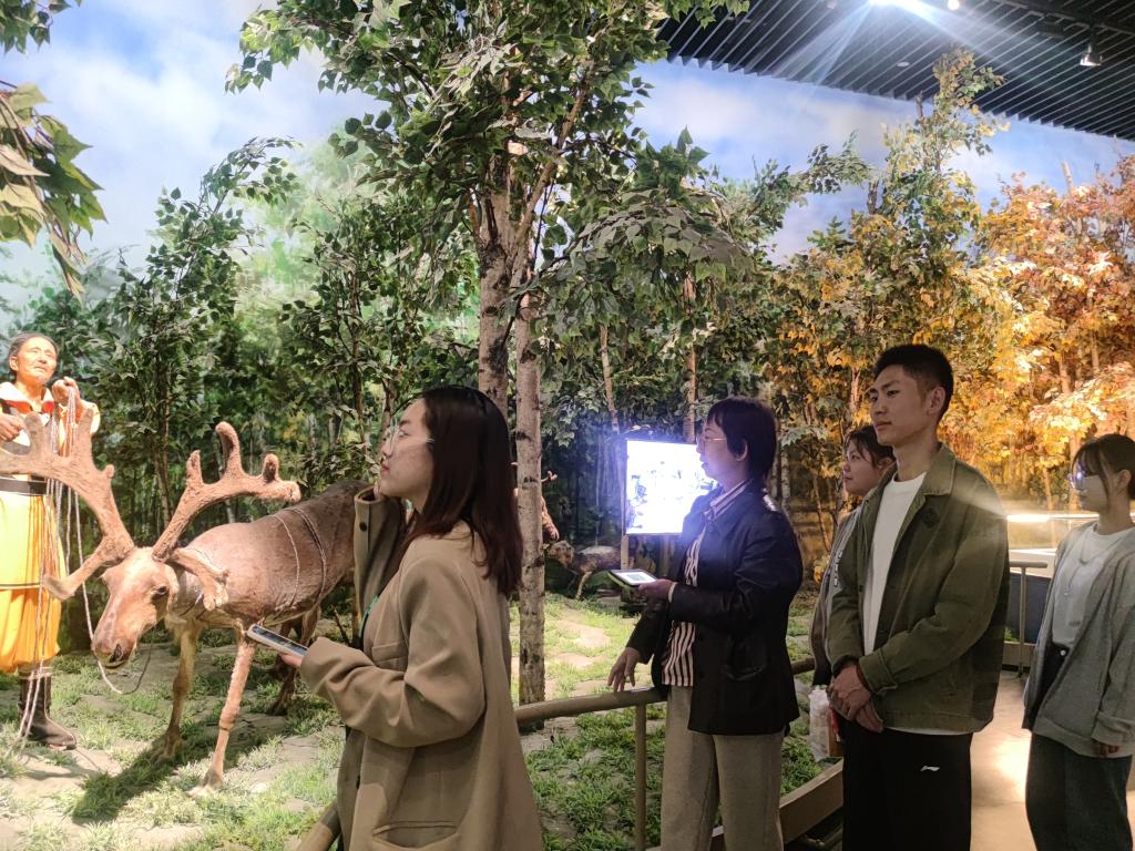 “民艺承袭”团队深入参观了内蒙古博物院“北疆桦歌”展厅,通过实景还原景搭,多维信息介绍展板,手工艺品近景展示等展块,阅乡彩部落习俗,览民俗风情文化,见古老手工技艺,品文化发展历史,更加深入了解学习体验中华优秀传统文化北疆三少民族----达斡尔族、鄂温克族、鄂伦春族民俗风情和艺术文化,感受瑰丽中华民族优秀传统文化、历史成就和文化传承,引导青年学生深刻领悟党的领导、文化自信、坚定理想信念和历史使命。