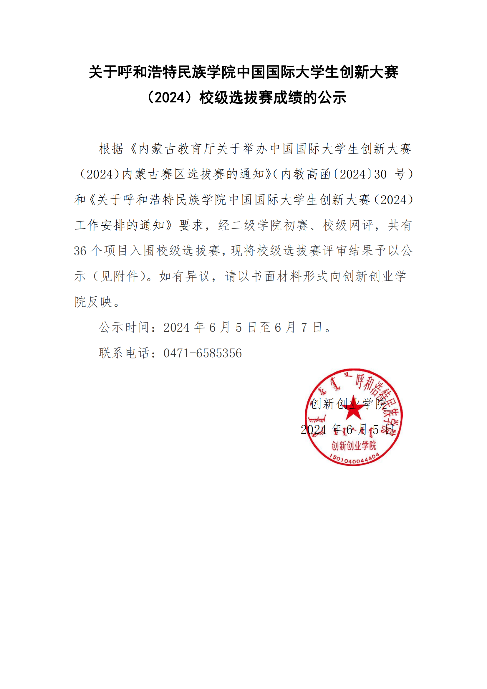 关于YABO鸭脖中国国际大学生创新大赛(2024)校级选拔赛成绩的公示