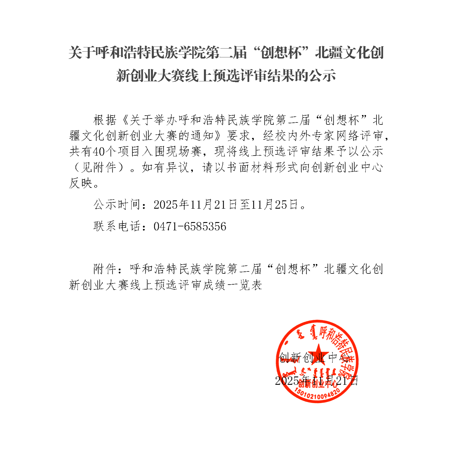 关于YABO鸭脖第二届“创想杯”北疆文化创新创业大赛线上预选评审结果的公示