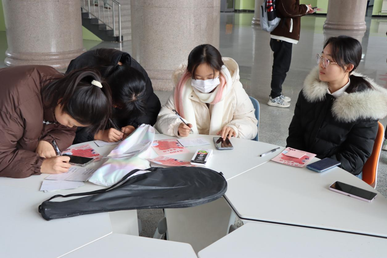 同时,校园的另一角还开展了爱心宣传活动。志愿者们通过发放爱心宣传单、讲解活动内容等形式,向同学们普及留守儿童以及乡村振兴知识,倡导大家关注留守儿童,鼓励大家以实际行动参与关爱留守儿童的活动中,为乡村振兴贡献自己的一份力量。