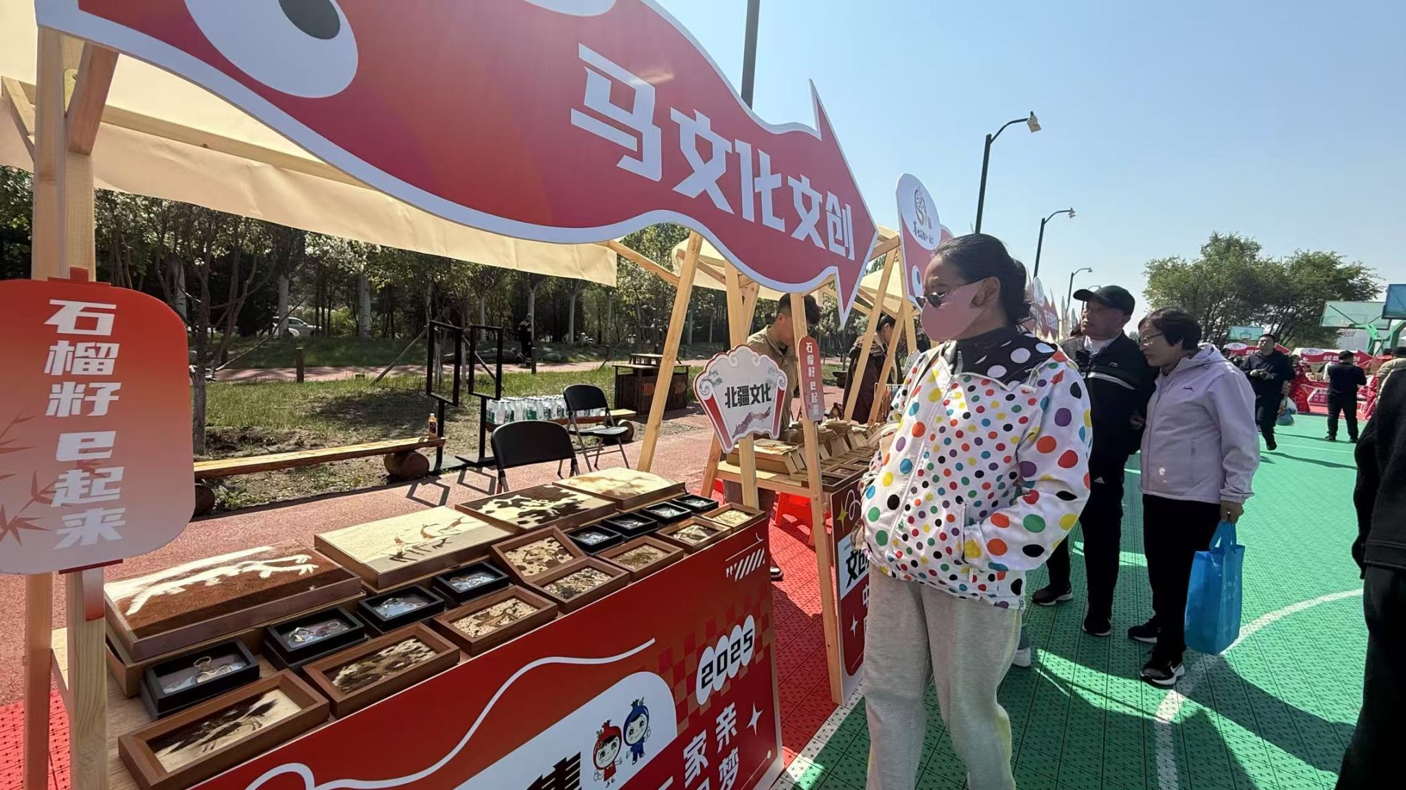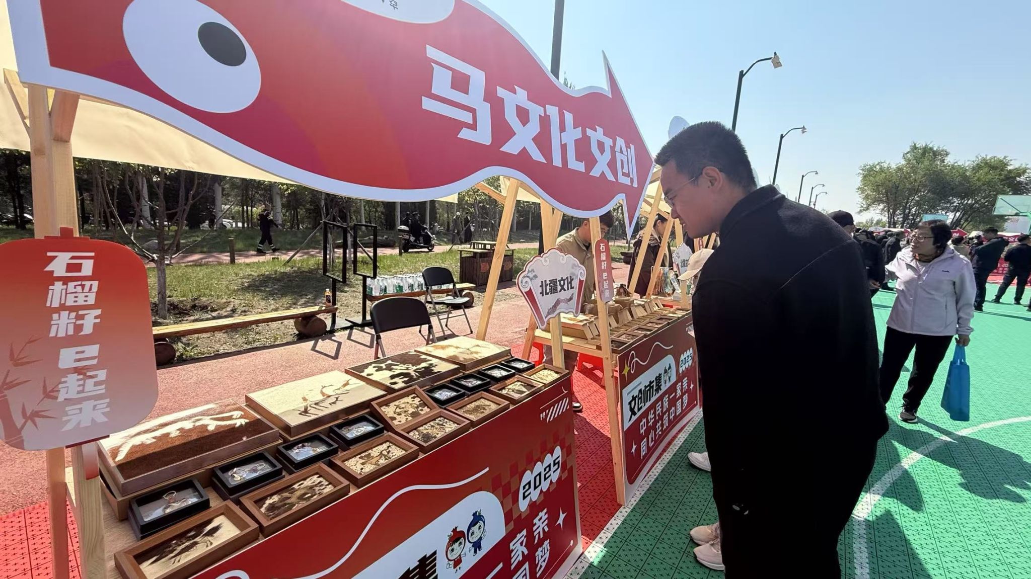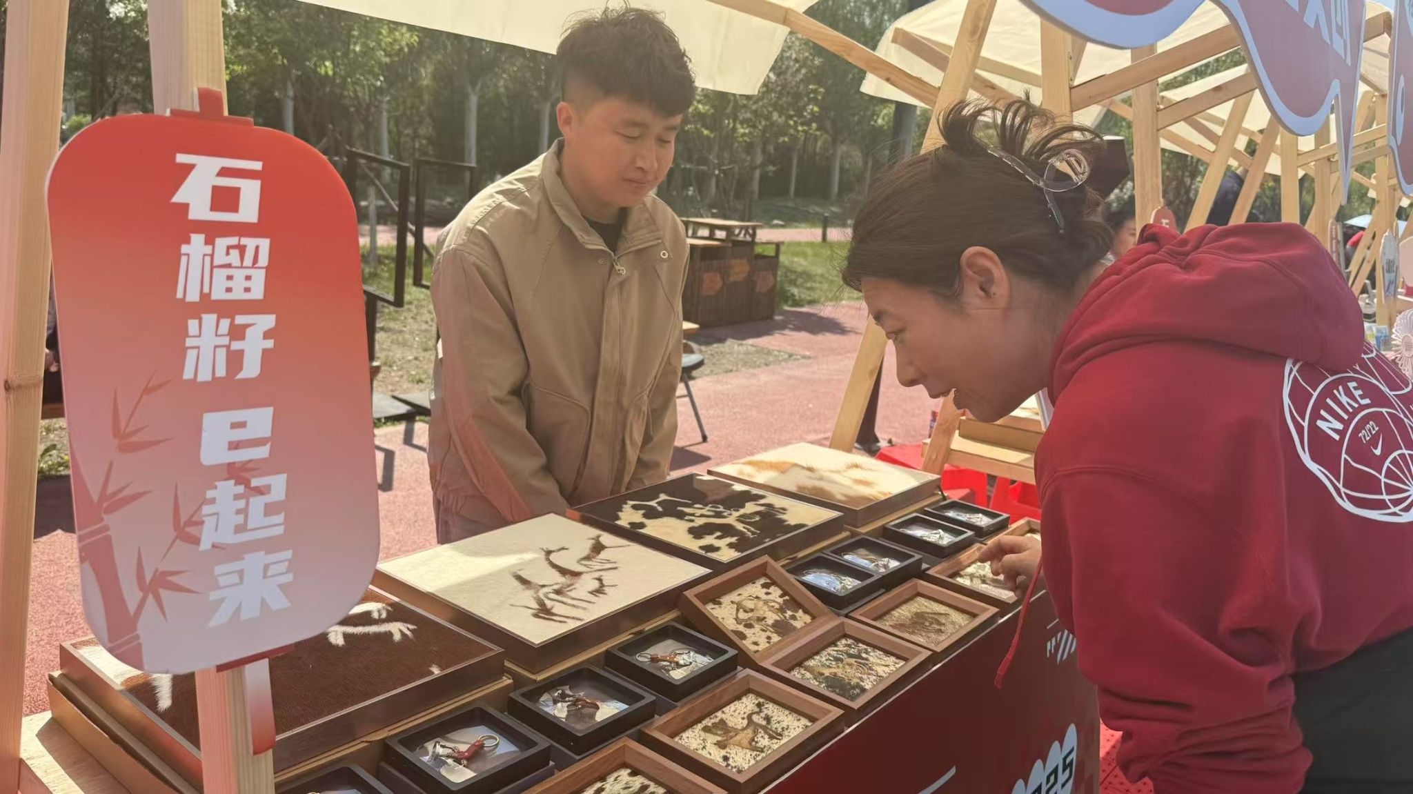 活动期间在公园一侧开展文创市集区,汇集各类北疆文化文创产品。学校展陈专区展出了鸭脖美术与设计学院党外知识分子、留学归国人员、非遗传承人制作的毡画、皮画、金银措工艺品等具有代表性的各色非遗文创产品,充分展示了学校在中华优秀传统文化创新性发展的成果。