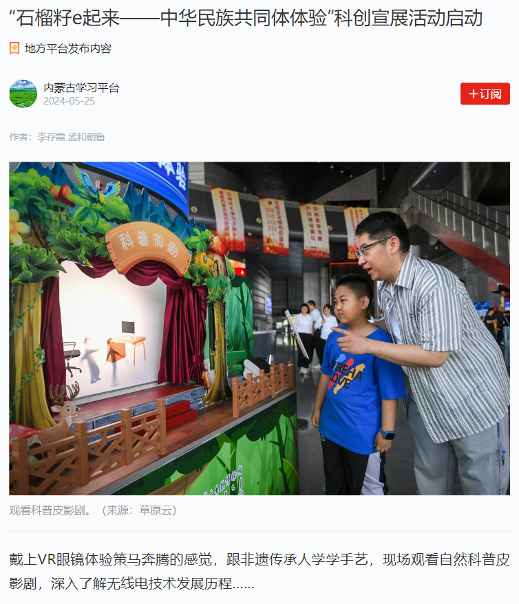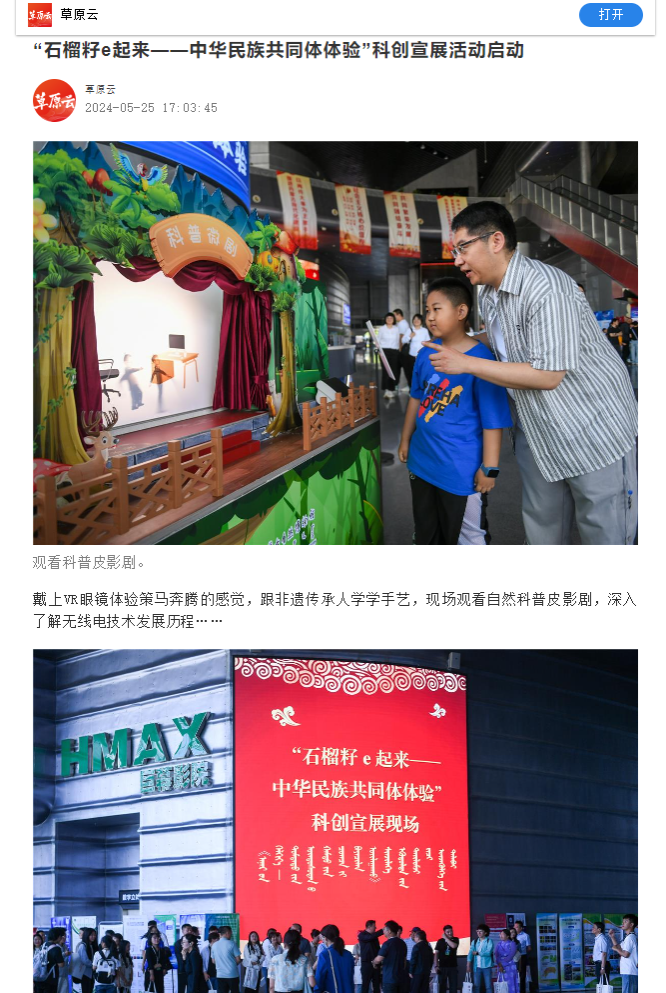 为深入学习贯彻落实习近平总书记关于加强和改进民族工作的重要思想,按照学校《2024年“民族政策宣传月”“民族法治宣传周”活动方案》和铸牢中华民族共同体意识“一院一品”活动安排,5月25日,统战部联合美术学院、音乐学院前往内蒙古科技馆,参加由自治区民委主办,自治区地方语言文字研究应用中心、内蒙古科技馆承办的“石榴籽e起来——中华民族共同体体验”科创宣展活动。