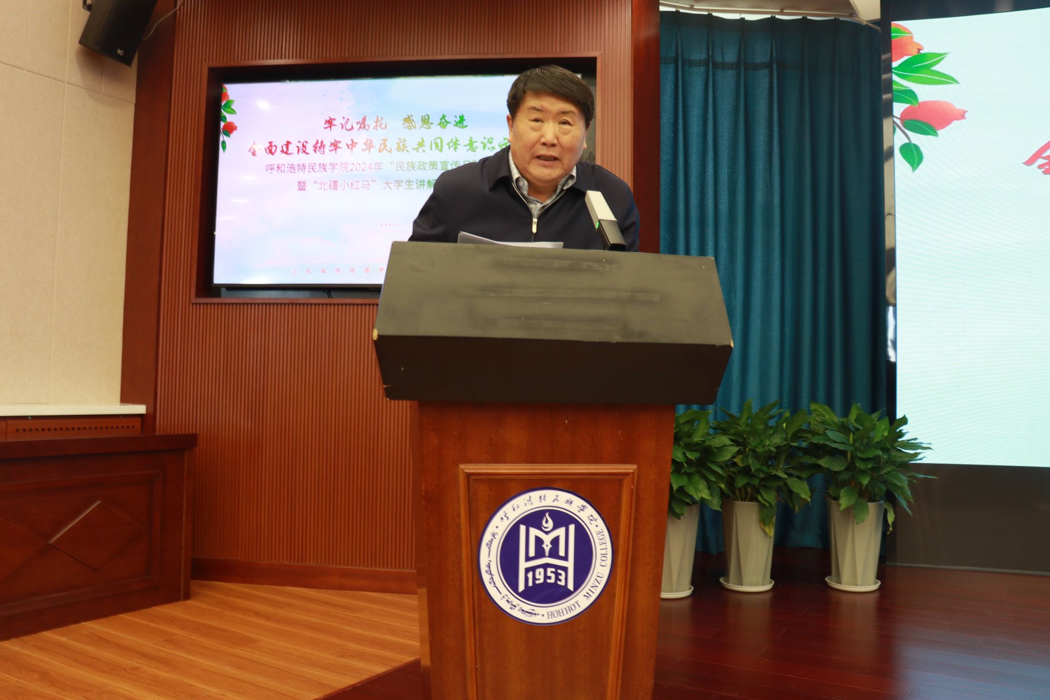 五月份是全区民族政策宣传月,五月份最后一周是民族法治宣传周。4月29日上午,鸭脖在综合楼12楼会议室举办“民族政策宣传月”启动仪式暨“北疆小红马”大学生讲解团成立仪式。学校党委书记刘九万,党委副书记格根哈斯,党委委员、副校长额尔敦布和出席,党委委员、统战部部长包君主持仪式。党委委员、纪委委员、副处以上领导干部,“北疆小红马”大学生讲解团成员参加。