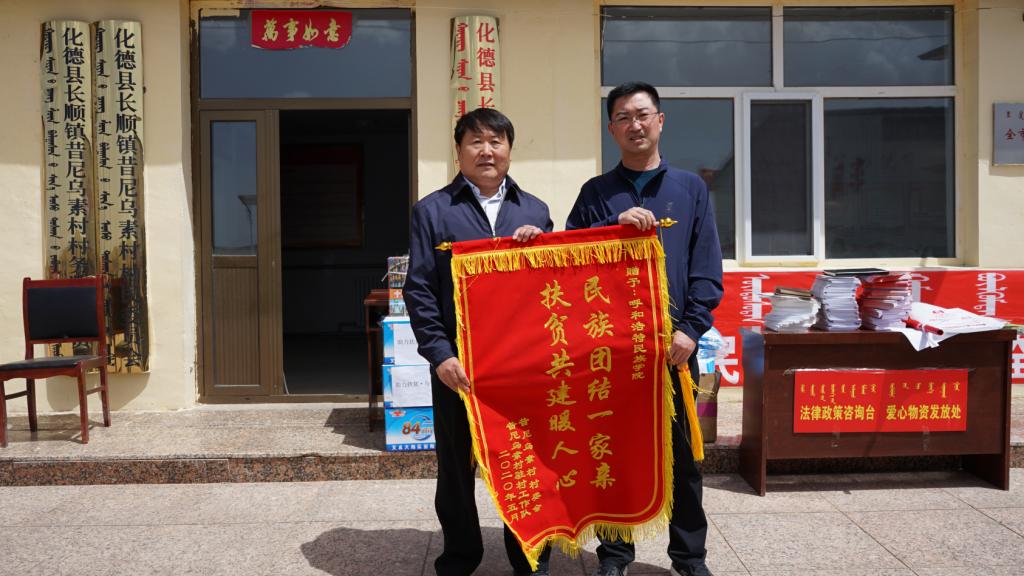为切实做好维护民族团结的思想引领,促进各民族间交往、交流、交融,不断铸牢中华民族共同体意识,不断开创校内外各民族共同团结奋斗、共同繁荣发展的局面,2020年5月28日,正值“民族法制宣传周”,在YABO鸭脖党委委员、统战部部长包君的带领下,统战部、法学院、计算机学院一行10人深入定点帮扶的化德县昔尼乌素村开展了“民族法制宣传周”进基层活动。本次活动得到化德县县委、县政府的高度重视,化德县县委副书记、政法委书记白俊伟、长顺镇镇长武治宇、化德县民族局局长宝国宏、化德县政府办公室副主任梁燕昆、长顺镇副镇长杨春光、化德县民族局副局长和希格陪同全程开展活动,化德县电视台全程报道。