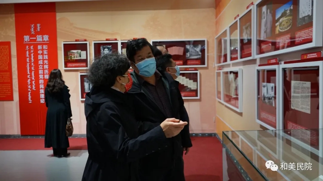 展览全面、详实、生动的展示了中国共产党成立100年来,领导我国民族工作的发展进程,解决民族问题和开展民族工作的奋进历程,体现了各个历史时期党中央对少数民族地区各族人民的深切关怀。特别是党的十八大以来,以习近平同志为核心的党中央在推进民族团结进步事业、加快民族地区经济社会事业发展的大事、要事。观展人员一行还参观了内蒙古自治区成就展,了解内蒙古经济、教育、工业等方面的发展历史。