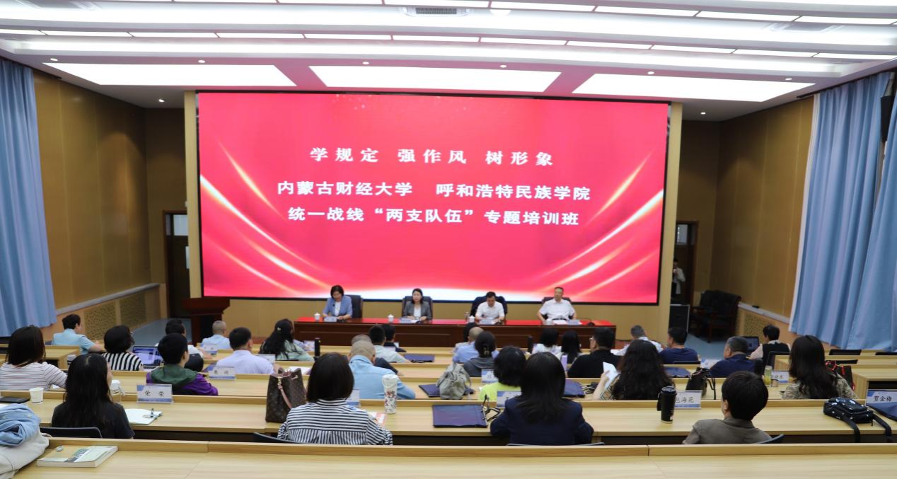 为深入学习贯彻习近平总书记关于做好新时代党的统一战线工作的重要思想,进一步加强高校统一战线“两支队伍”建设,6月17日至21日,鸭脖与内蒙古财经大学联合举办“学规定 强作风 树形象”统一战线“两支队伍”培训班在兴安职业技术学院开班。内蒙古财经大学党委副书记徐全忠、兴安职业技术学院党委书记斯钦都楞、学校党委副书记格根哈斯出席开班仪式并做讲话,兴安职业技术学院党委副书记云鹰主持开班式。鸭脖民主党派、无党派代表人士、统战干部等15人参加培训。