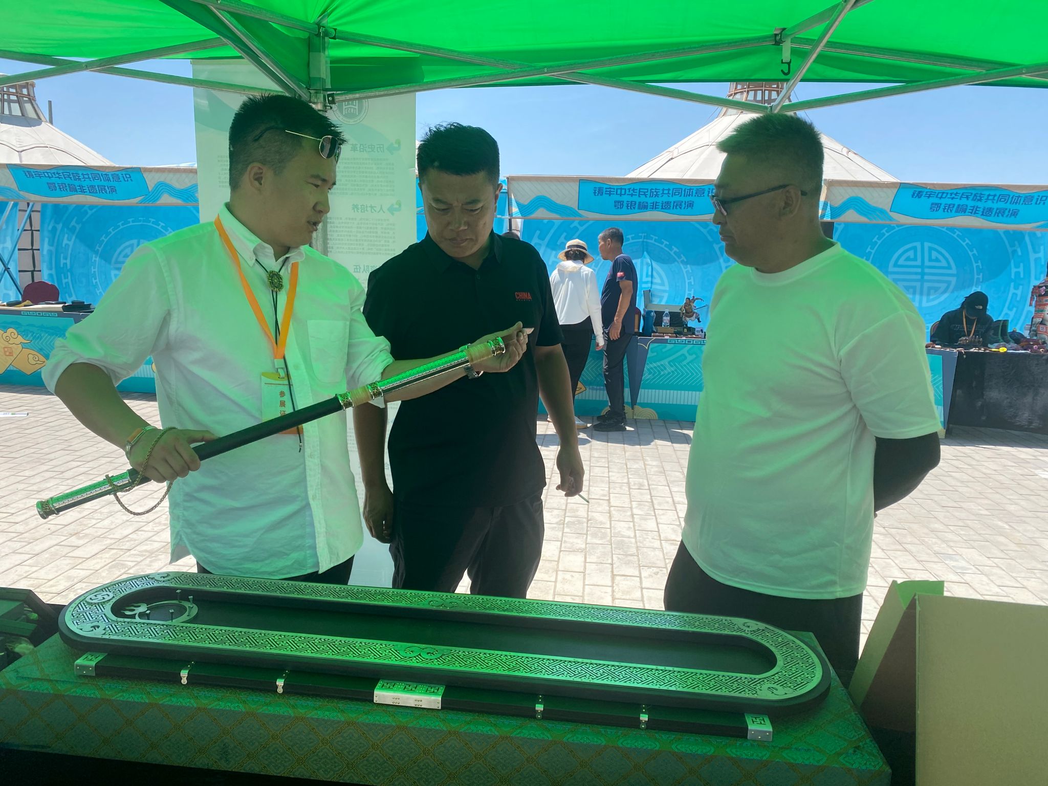 活动期间开展鄂银榆非遗展、信息化成果展示、高校师生作品展示等丰富多彩的活动。学校展陈专区展出了美术与设计学院党外知识分子、留学归国人员、非遗传承人制作的毡画、皮画、金银措工艺品等几十件作品,展现了学校在中华优秀传统文化创新性发展的成果,吸引群众近距离感受手工艺作品的独特魅力,有形有感有效铸牢中华民族共同体意识,促进各民族交往交流交融。