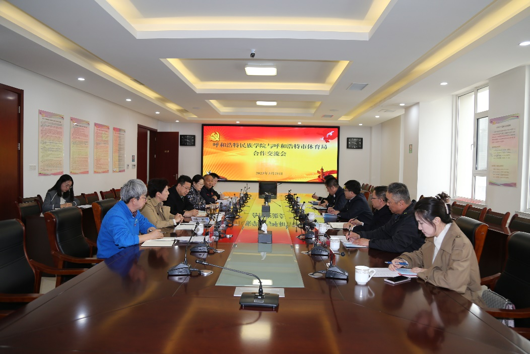 为进一步加强校企、校地、校校合作,着力提升应用型技能型人才培养质量,3月21日下午,学校党委副书记、校长韩伟新、副校长刘瑞鸿一行赴呼和浩特市体育局、呼和浩特市体育运动学校走访调研。与呼和浩特市体育局党组书记、局长蔡铁雷等呼和浩特市体育局、呼和浩特市体育运动学校领导同志进行了座谈交流。