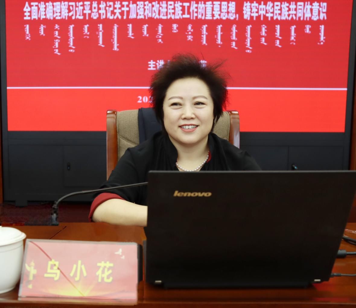 乌小花以《全面准确理解习近平总书记关于加强和改进民族工作的重要思想,铸牢中华民族共同体意识》为题目,从“中国共产党百年民族工作理论与实践的智慧结晶”、“中国特色社会主义民族理论建设的一次重大飞跃”和“马克思主义民族理论中国化、时代化的最新成果”等三个维度,紧紧围绕铸牢中华民族共同体意识主线,系统阐述了习近平总书记关于加强和改进民族工作的重要思想形成的历史背景和重大意义。