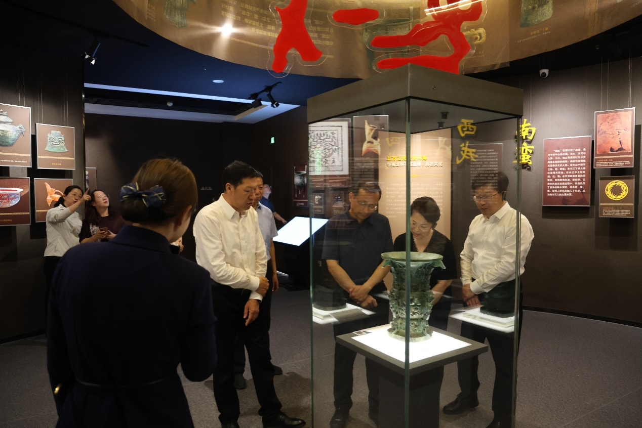 调研组一行考察了校史馆、铸牢中华民族共同体意识教育馆、民族团结进步文化长廊、时代楷模人物长廊,参观了美术学院2024届毕业生毕业作品展,“北疆记忆”非遗乐器展。