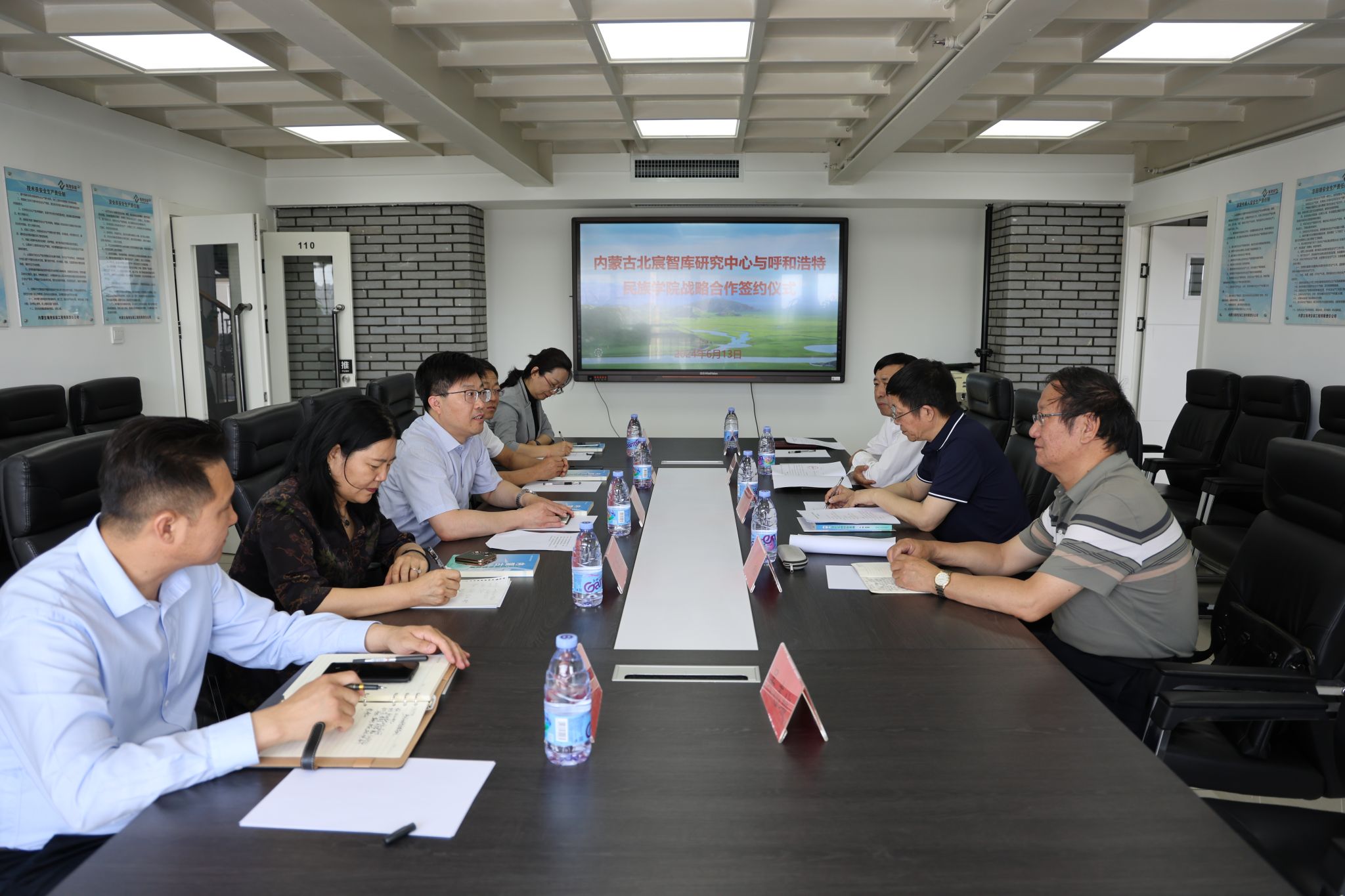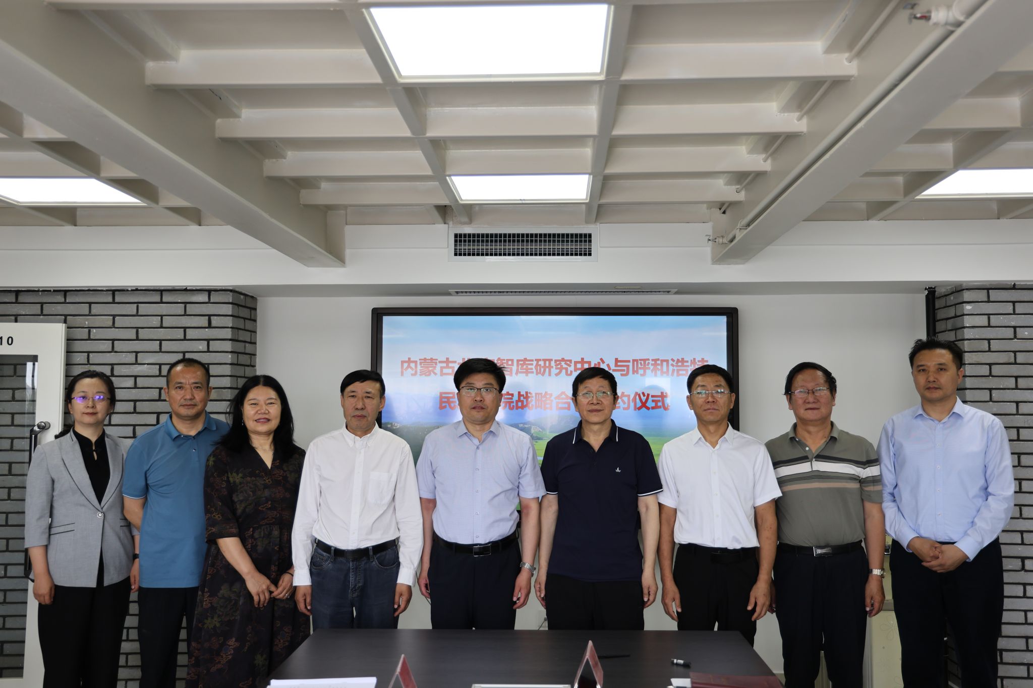 6月13日,校党委副书记、校长韩伟新带队赴内蒙古北宸智库研究中心签署战略合作协议,并开展座谈交流。校党委委员、副校长高喜天出席签约仪式。内蒙古北宸智库研究中心理事长蔡常青、北宸智库决策咨询专委会主任包思勤、北宸智库民族政策专委会主任毅松、北宸智库研究中心监事长马益波及北宸智库公共传播部吴志城出席签约仪式。