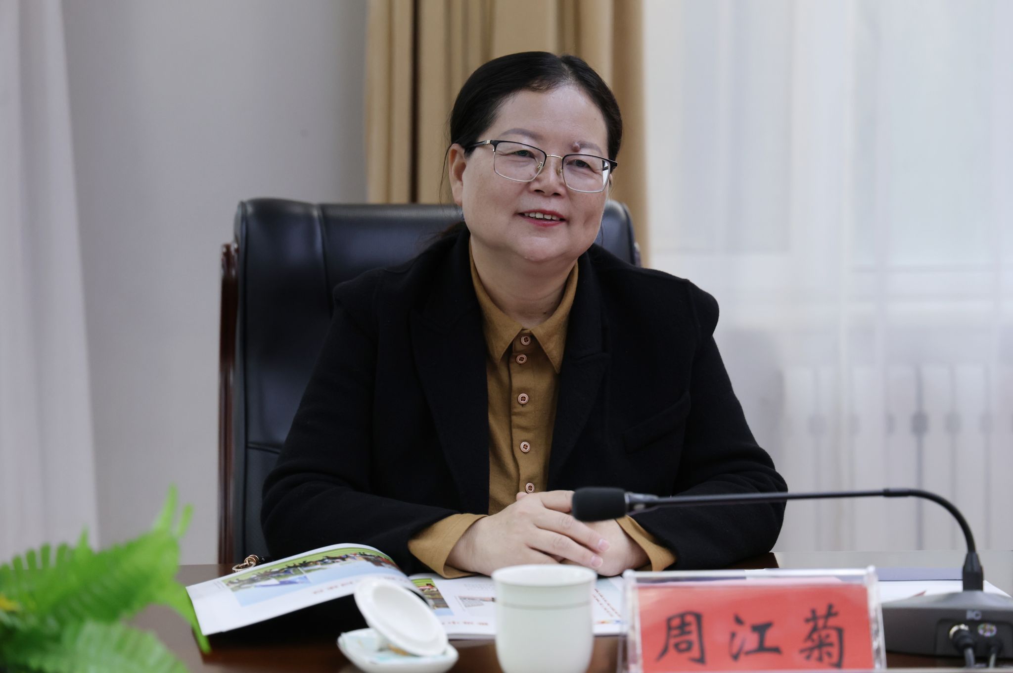 10月31日,凯里学院党委副书记周江菊一行来鸭脖调研座谈。座谈前,校党委书记刘九万会见了周江菊一行,并介绍了学校在全面贯彻落实铸牢中华民族共同体意识主线,以推进“两馆两廊一园”阵地建设和使用为抓手,持续加强铸牢中华民族共同体意识宣传教育和教学科研,发挥全国民族团结进步示范学校模范作用的经验做法。