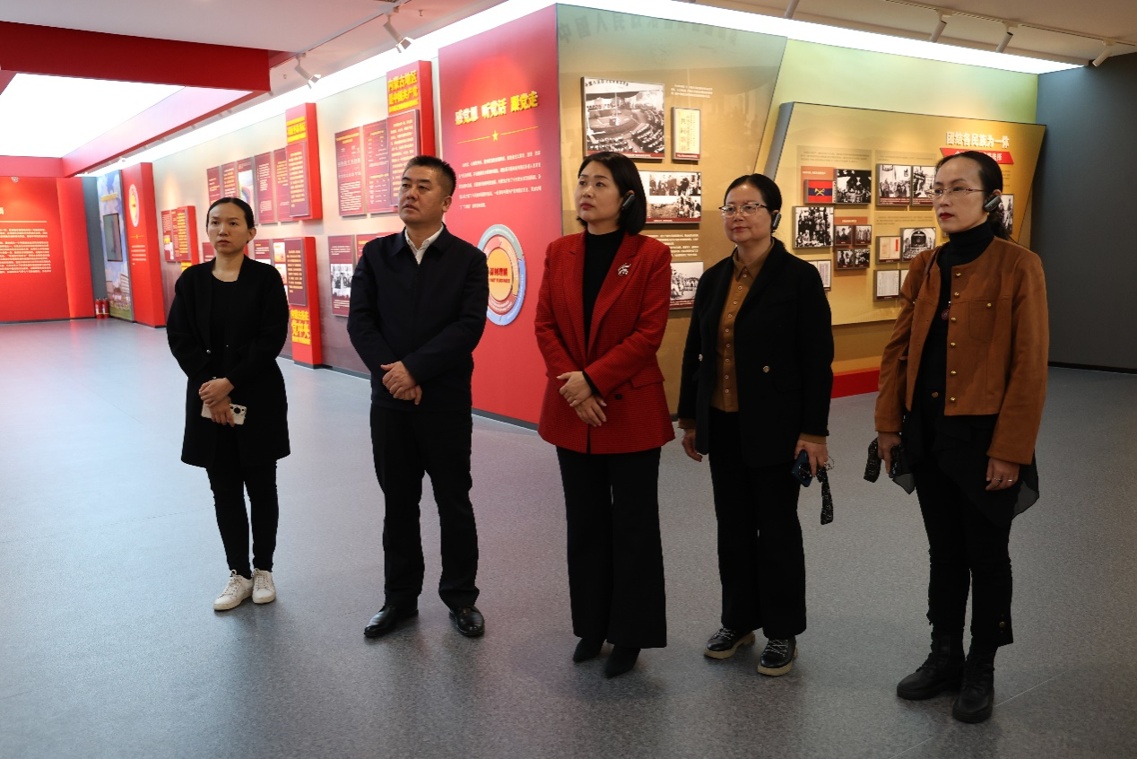 座谈会前,周江菊一行参观考察了校史馆、铸牢中华民族共同体意识教育馆、非遗体验馆等校内场馆。