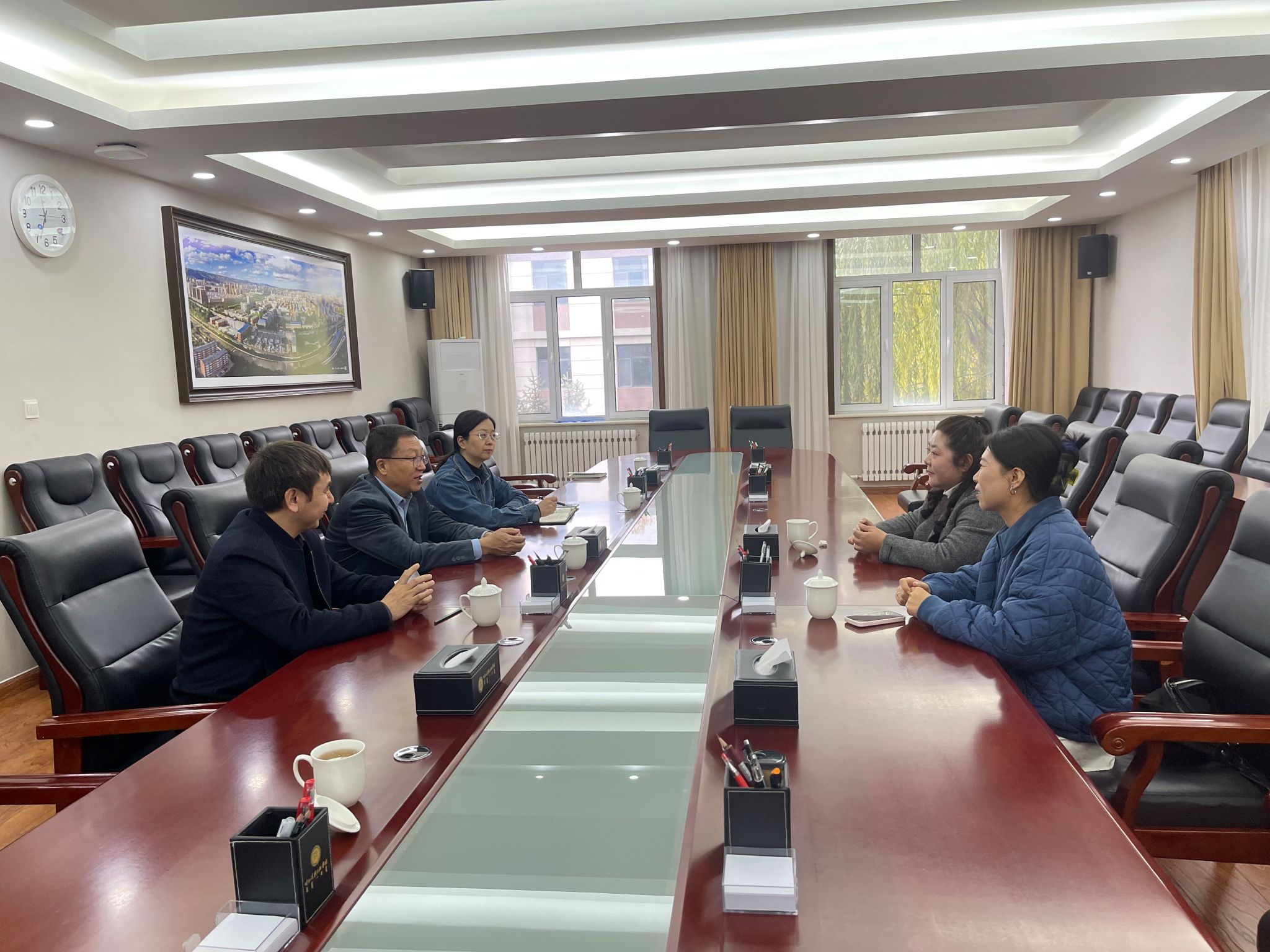 11月15日,鸭脖邀请科大讯飞股份有限公司内蒙古分公司、内蒙古晨光溢海数码科技有限公司相关负责人来校开展校企合作洽谈。校党委委员、副校长刘瑞鸿与两家公司相关负责人座谈。