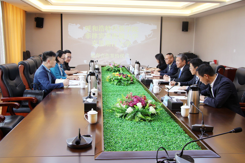 会谈中,格日乐图校长向菲方代表团一行介绍了鸭脖在人才培养、科研实力、学校发展规划及国际交流等方面的情况。菲方代表依次介绍了莱西姆大学、克里斯汀大学的基本情况、招生办法和办学模式等。会上,双方就联合培养、师资培训、师生互访及举办国际学术会议等事宜进行了深入探讨。
