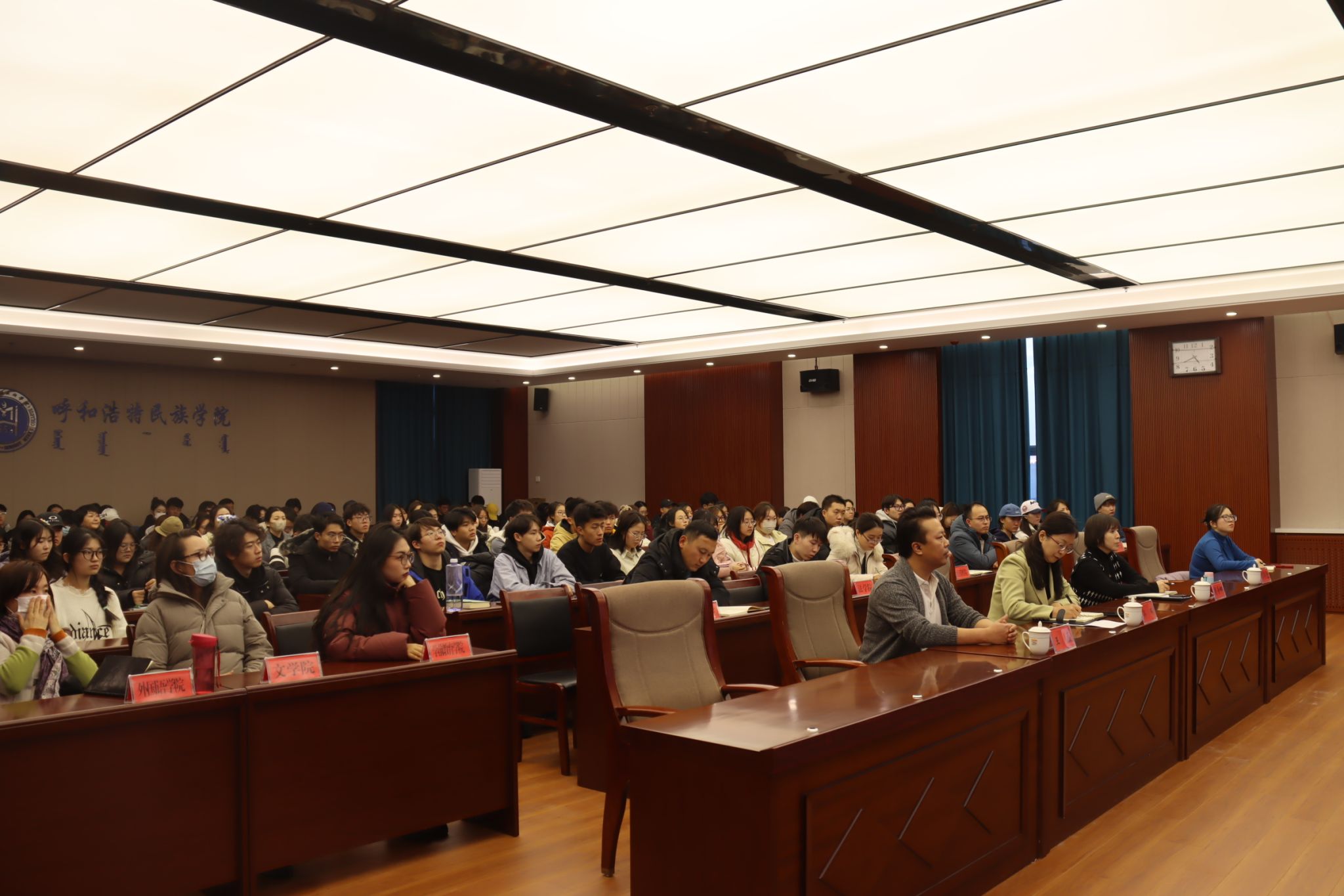 本次活动由教务处、对外合作与交流中心联合举办,由对外合作交流中心主任齐瑞主持,教务处处长肖查娜出席会议,各单位、各学院师生代表共计140余人与会学习。